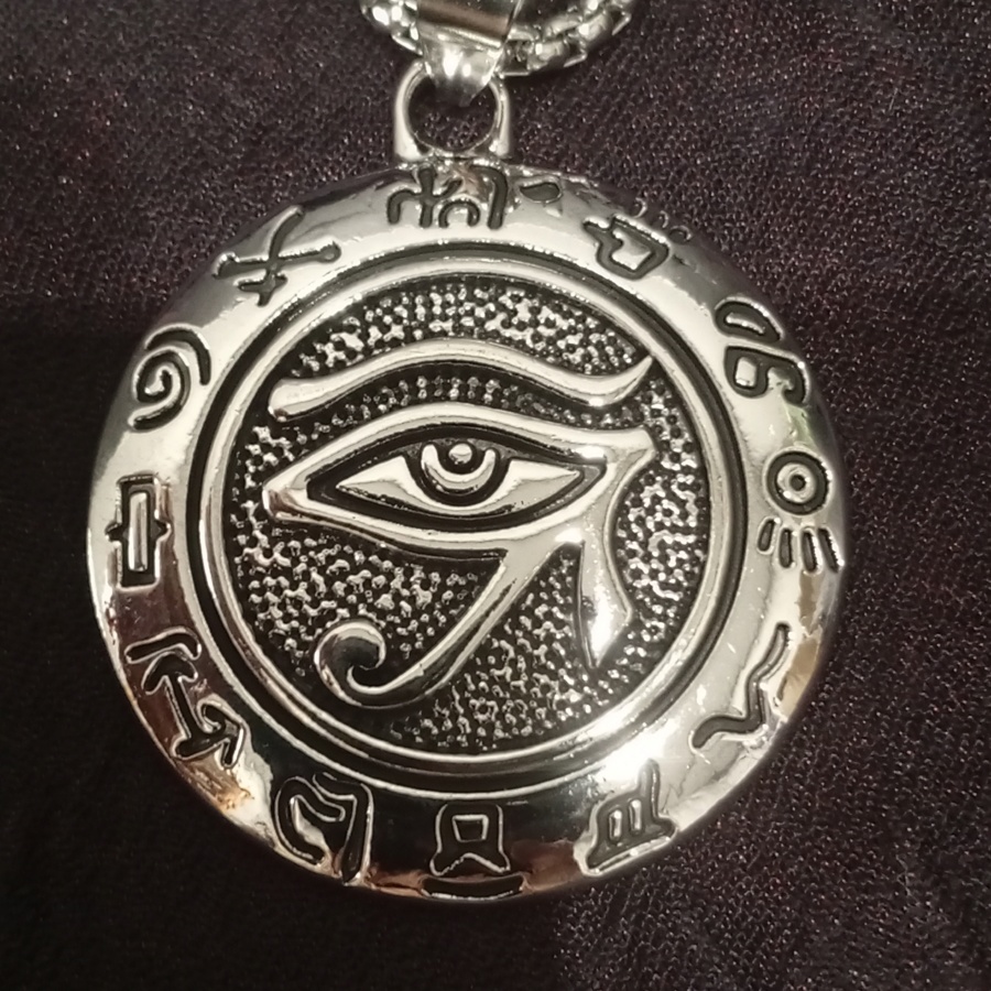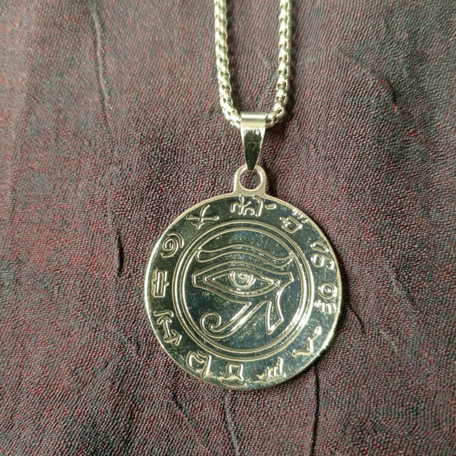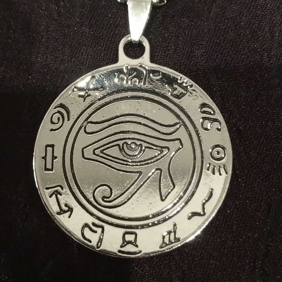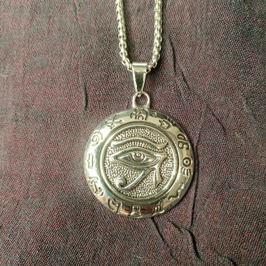 25519Амулет с изображением Уаджет - всевидящего ока бога Ра. Защищает от зла, болезней и неудач. Талисман с изображением с двух сторон, одна сторона выпуклая, а другая вогнутая. Толстая цепочка без регуляции длины.