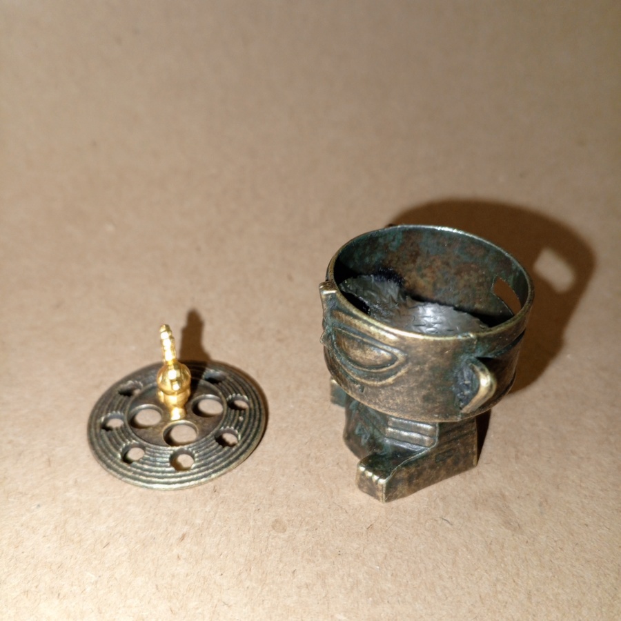 25575Подставка для благовоний в виде языческого истукана. подходит для сыпучих благовоний, ароматических конусов, в крышке есть отверстия, в можно установить палочки. При интенсивном использовании подставка может нагреваться, желательно устанавливать на негорючую поверхность.