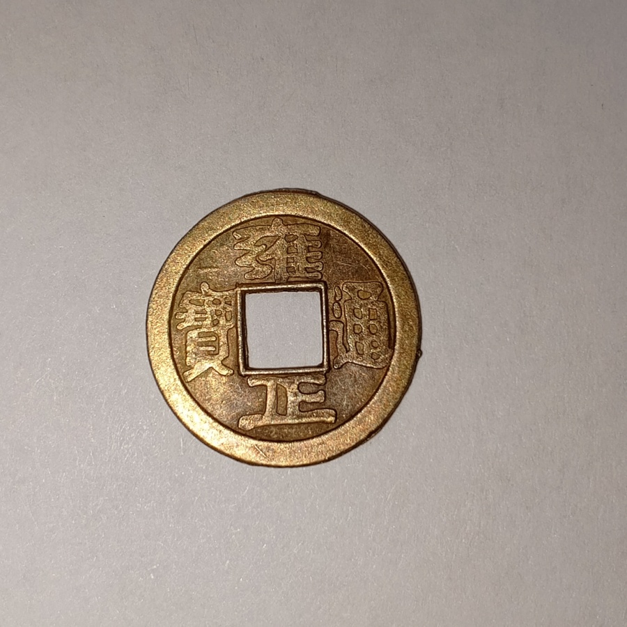 22660Небольшая монета с квадратной дыркой, копия старинных китайских монет. Используется как талисман богатства, в практиках Фен-Шуй ее обычно кладут в рот денежной трехлапой жабе.