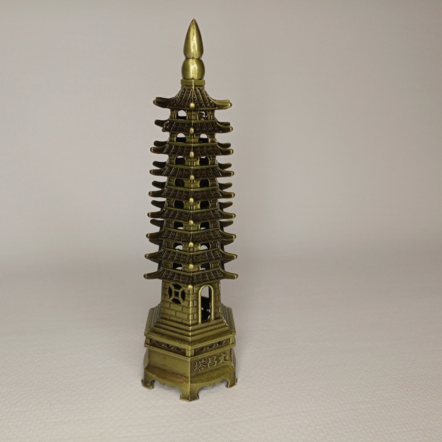 25622Фигурка в виде буддийского храма с 9 ярусами приносит благополучие, счастье и мир. Используется для привлечения успеха, помогает в учебе и карьере Можно ставить на рабочем столе, на северо-востоке дома (зона знаний), на прикроватной тумбочки для укрепления памяти и улучшения мышления.