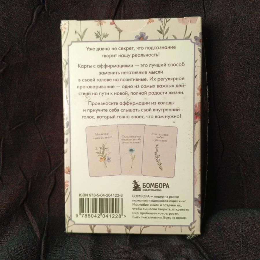 25487Приятные на вид карты с минималистичным оформлением: рисунок цветка и фраза. Аффирмации работают для настройки сознания как мантры-внушения. Сначала достигается суггестивный или гипнотический эффект, а потом человек открывает, что аффирмация начала работать на практике. Подобные явления давно известны психологам и используются в коррекции поведения. Теперь с появлением колоды аффирмаций можно изменить свою жизнь и даже судьбу очень простым и действенным способом.