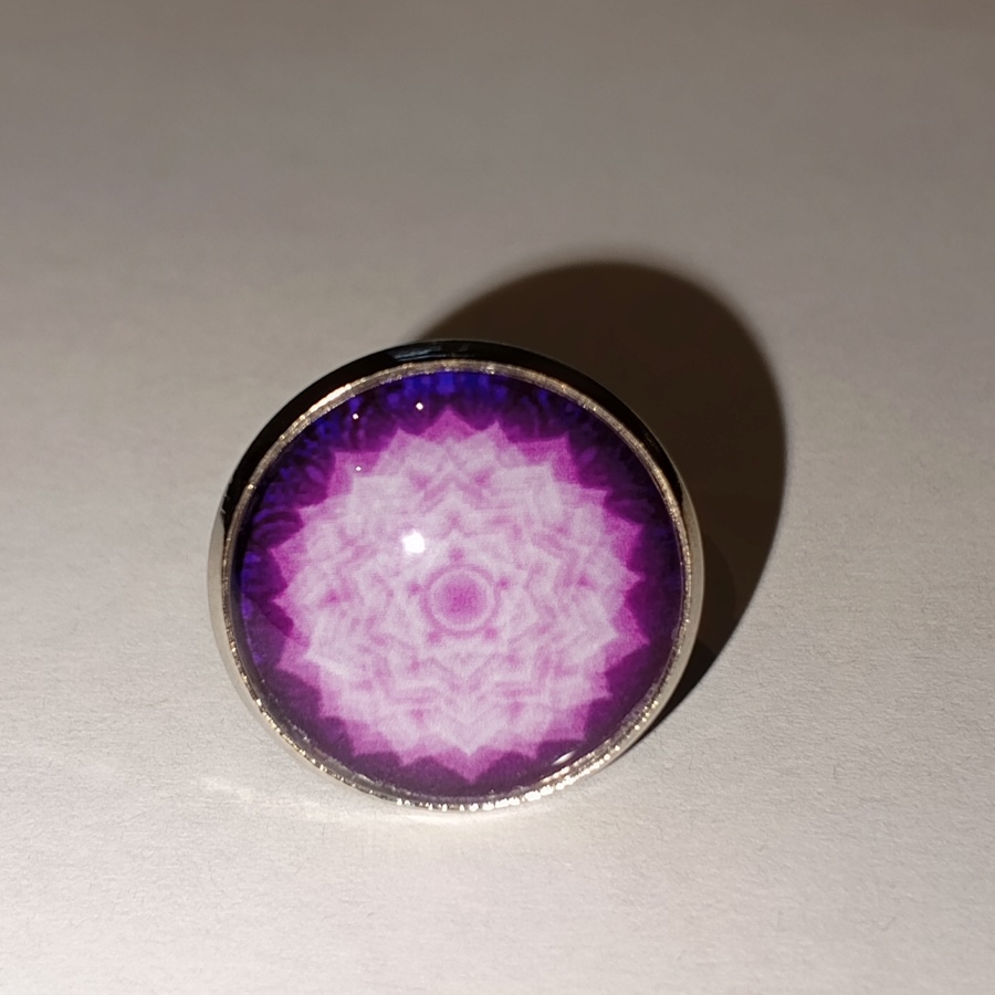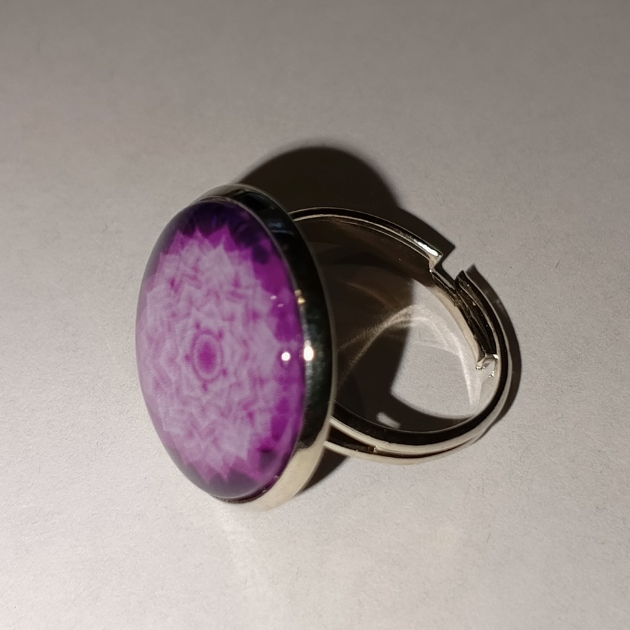25608Кольцо-талисман с символическим изображением коронной чакры, она традиционно изображается в виде фиолетового лотоса с 1000 лепесками или с очень большим количеством лепестков.
