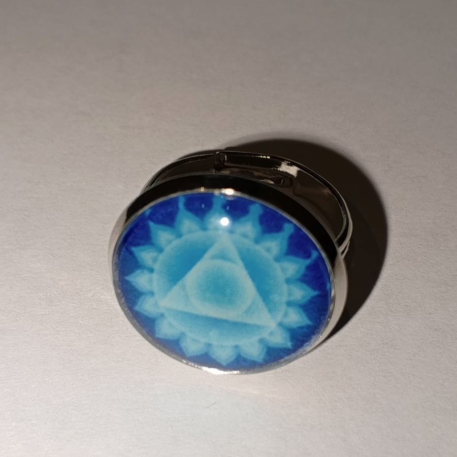25605Кольцо-талисман для созерцания и сосредоточения через зрительный образ. Горловую чакру традиционно изображают как голубой лотос с 16 лепестками. Концентрация на ней способствует самовыражению, речи и коммуникации.