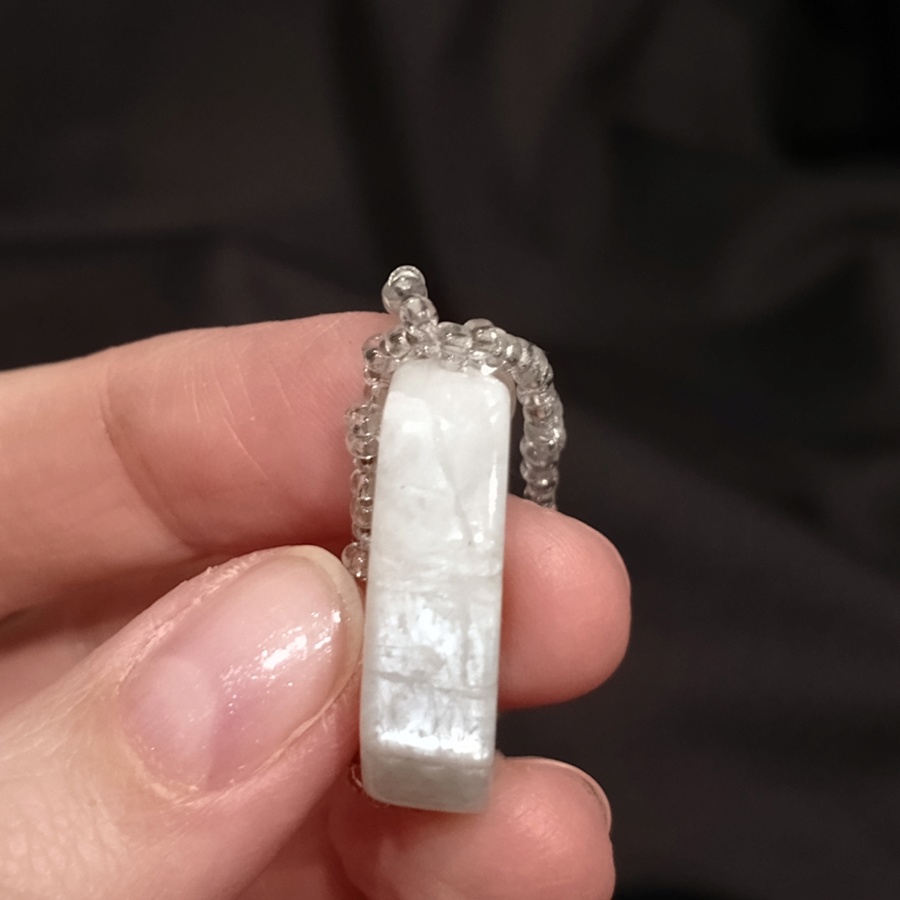 25574Талисман из каменной граненой бусины, оплетенный бисером с бисерным узором спереди.