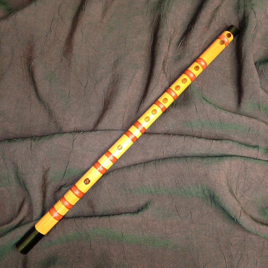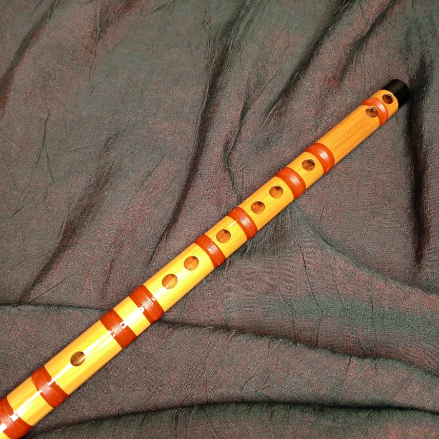 25509Простая по конструкции флейта без свистка или пластин внутри, представляет собой бамбуковую цельную трубку с отверстиями. Играют на такой флейте, управляя струей воздуха и особым образом закрывая отверстия пальцами. Звук ц флейты теплый, этнический.
