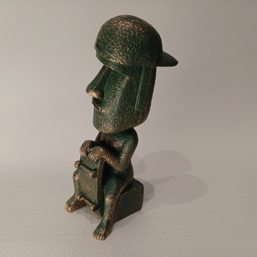 25620Фигурка в виде истукана с острова Пасхи в современной интерпретации: если бы древний истукан моаи был бы скейтером.