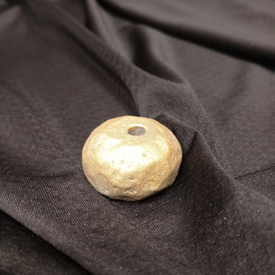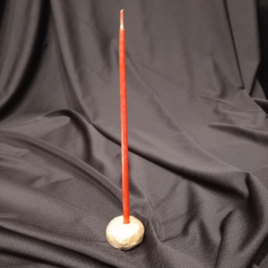 25139Маленький подсвечник в виде камня, покрыт золотистой краской. Диаметр отверстия 6 мм. Глубина отверстия 1 см. Прочный, негорючий, тяжелый (хорошо держит свечу), занимает очень мало места.