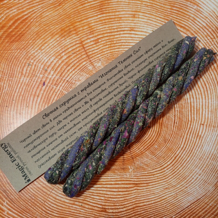 Эти свечи демонстрируют потрясающее действие, соединяя магию черного и фиолетового оттенков с магическими растениями: полынью, крапивой, лепестками роз и лавандой. Каждое растение играет важную роль в создании комплексной системы защиты и очищения: